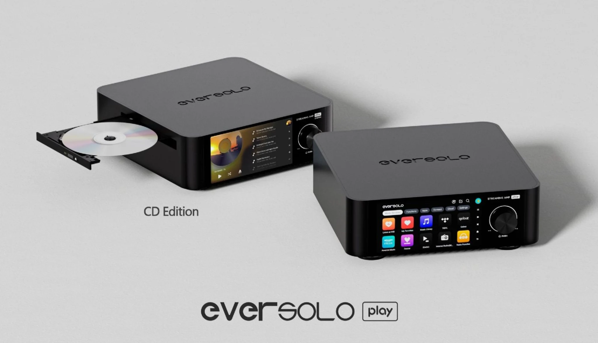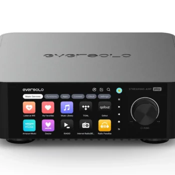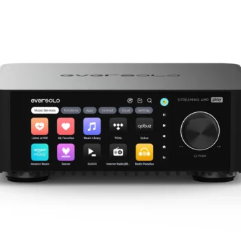 EISA‑vinnare 2025 — EverSolo Play: kompakt allt‑i‑ett‑streamingförstärkare som förenar förstärkning, DAC och streaming i ett snyggt CNC‑aluminiumchassi. Utrustad med 5,5″ pekskärm, AK4493 DAC, klass D‑slutsteg (60 W@8 Ω, 110 W@4 Ω) och avancerad rumskorrigering för skräddarsytt ljud i ditt lyssningsrum. Plattformen bygger på Android och styrs via skärm eller app, med stöd för populära streamingtjänster och tredjepartsappar samt lokal uppspelning.