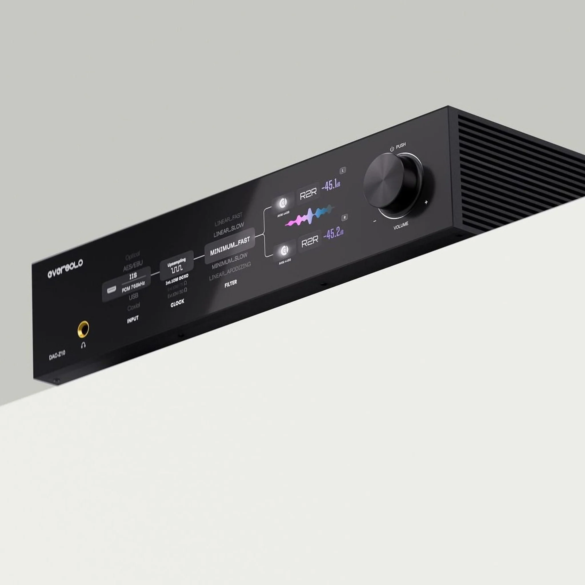 Dubbla DAC‑moduler och R2R‑volym Varje kanal har egna AK4191+AK4499‑moduler för balanserad återgivning med hög dynamik och låg distorsion. En R2R‑motståndsmatris för volymkontroll bibehåller signalens integritet över alla nivåer, vilket ger bättre dynamik än många digitala volymlösningar.