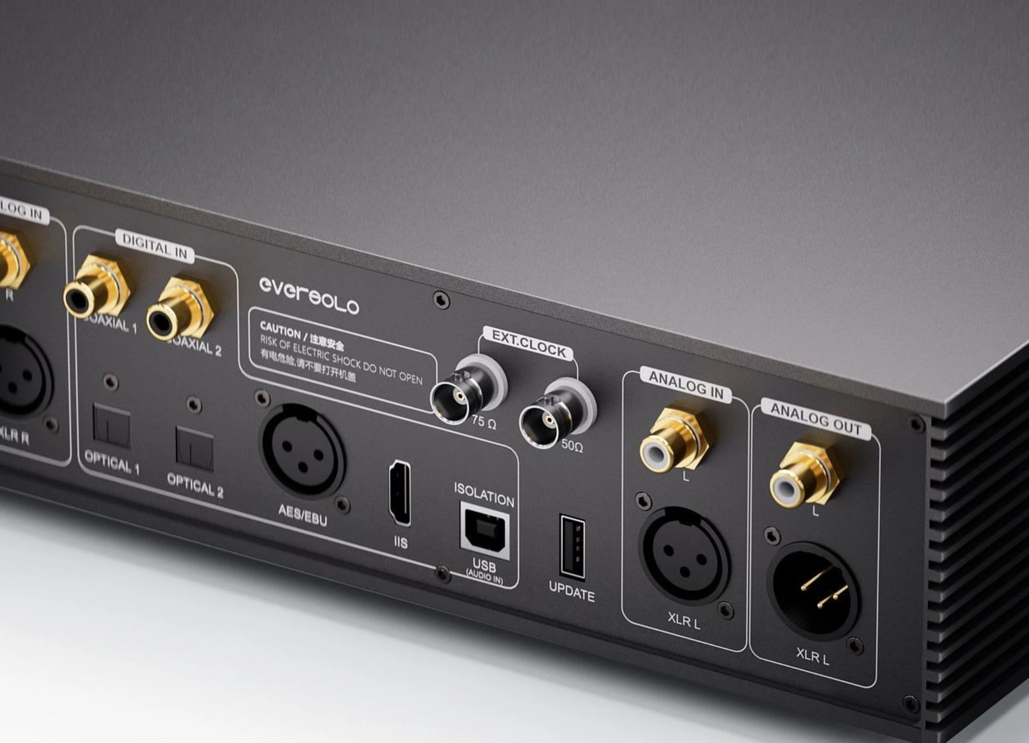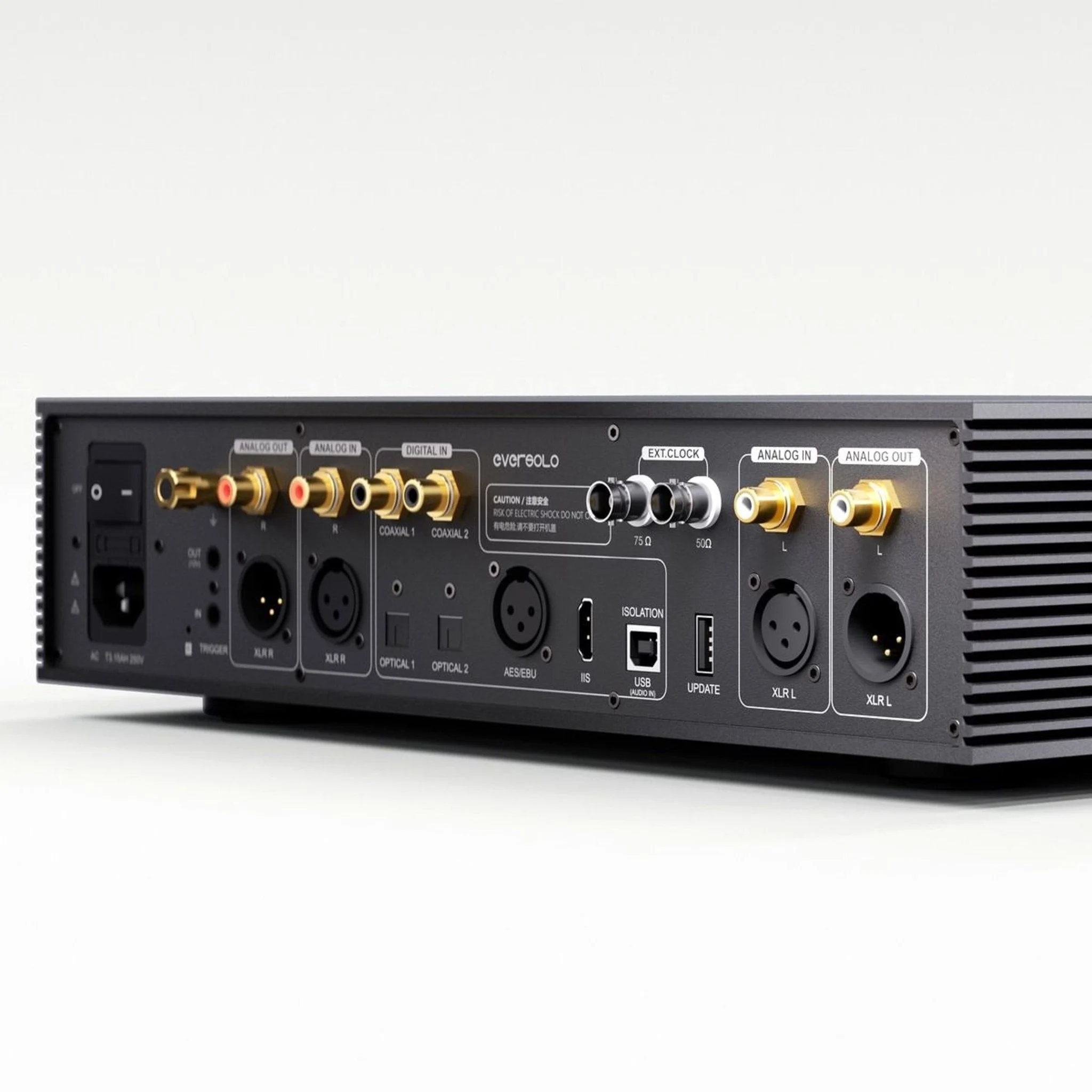 Fullt isolerad konstruktion DAC‑Z10 använder Eversolos Fully Isolated Architecture (FIA) som separerar digitala och analoga domäner för att minimera störningar och bevara signalintegritet. Tre oberoende toroidtransformatorer ger isolerad ström till vänster, höger och systemkretsar, vilket ger mycket låg brusnivå och minimerar kanalöverhörning.