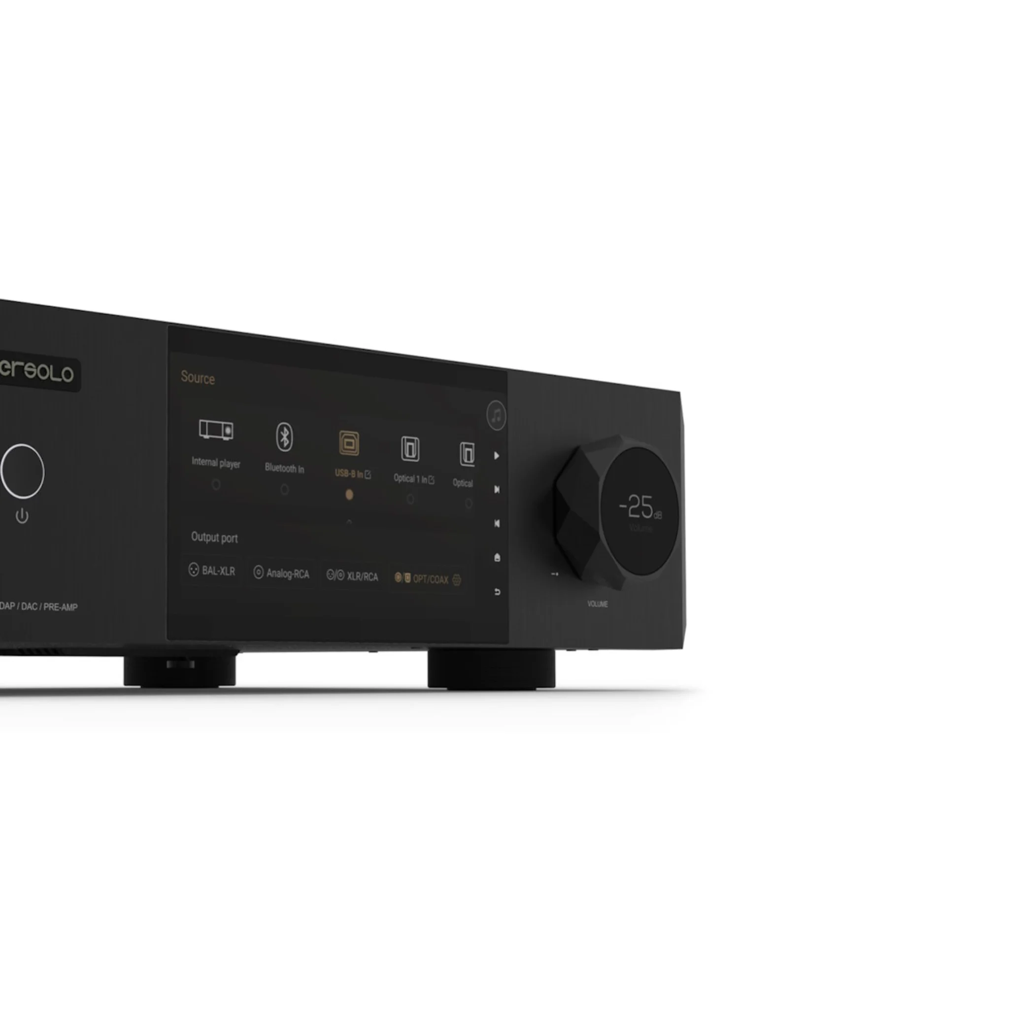 - Utgångar: XLR, RCA, HDMI I2S, coax, optisk, 2x USB-A, 2x subwoofer, 12V trigger
