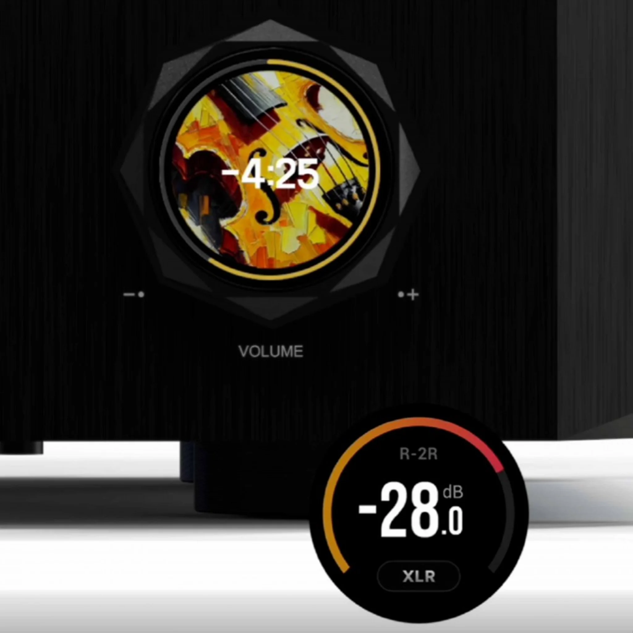 R2R-volymkontroll och strömförsörjning Förförstärkarsteget använder R2R-volymkontroll med 64 reläer och precisionmotstånd för exakt, brusfri volymstyrning. Dubbla lågbrusiga strömförsörjningar minimerar störningar i både digitala och analoga kretsar; analog kretsbrus kan reduceras till under 30 µVrms. En patenterad intelligent växlingsteknik gör enheten kompatibel med globala spänningsnivåer utan omkopplare.