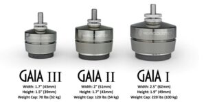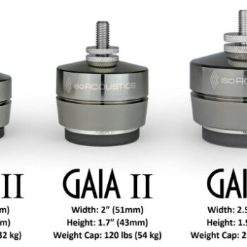 The GAIA isolators are machined units that incorporate IsoAcoustics’ patented design to provide a high degree of speaker isolation, while resisting lateral movement and oscillations, to maintain alignment with the listening position. Internal reflections from the hard supporting surface are attenuated resulting in greater sound clarity and openness. Optimal results are achieved by installing the GAIA isolators with the logo facing the listening position, or rotated 180 degrees, to align the isolators with the speaker’s motive forces. Lift and place the speakers into position as the GAIA lower isolators will adhere to the supporting surface.